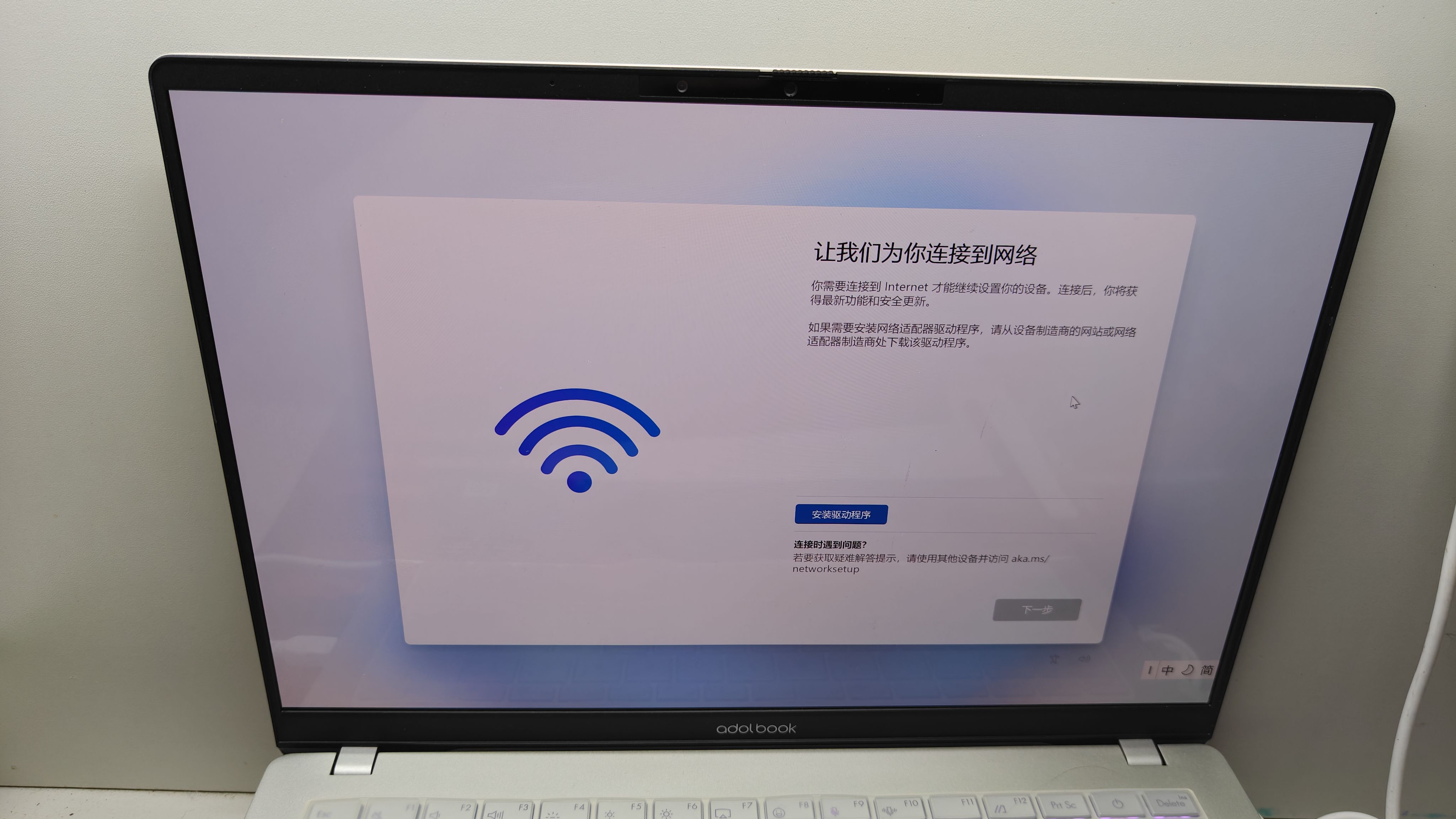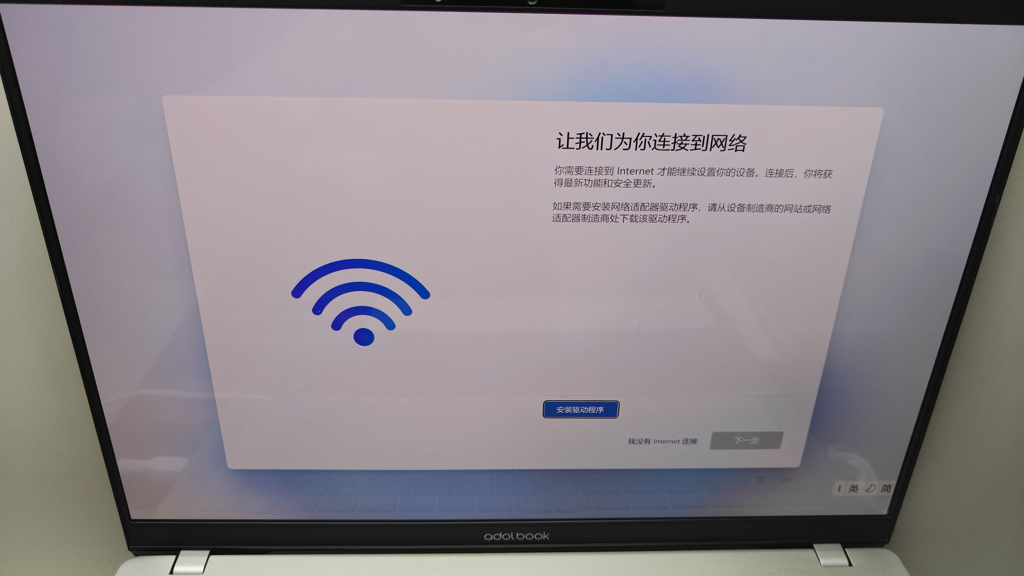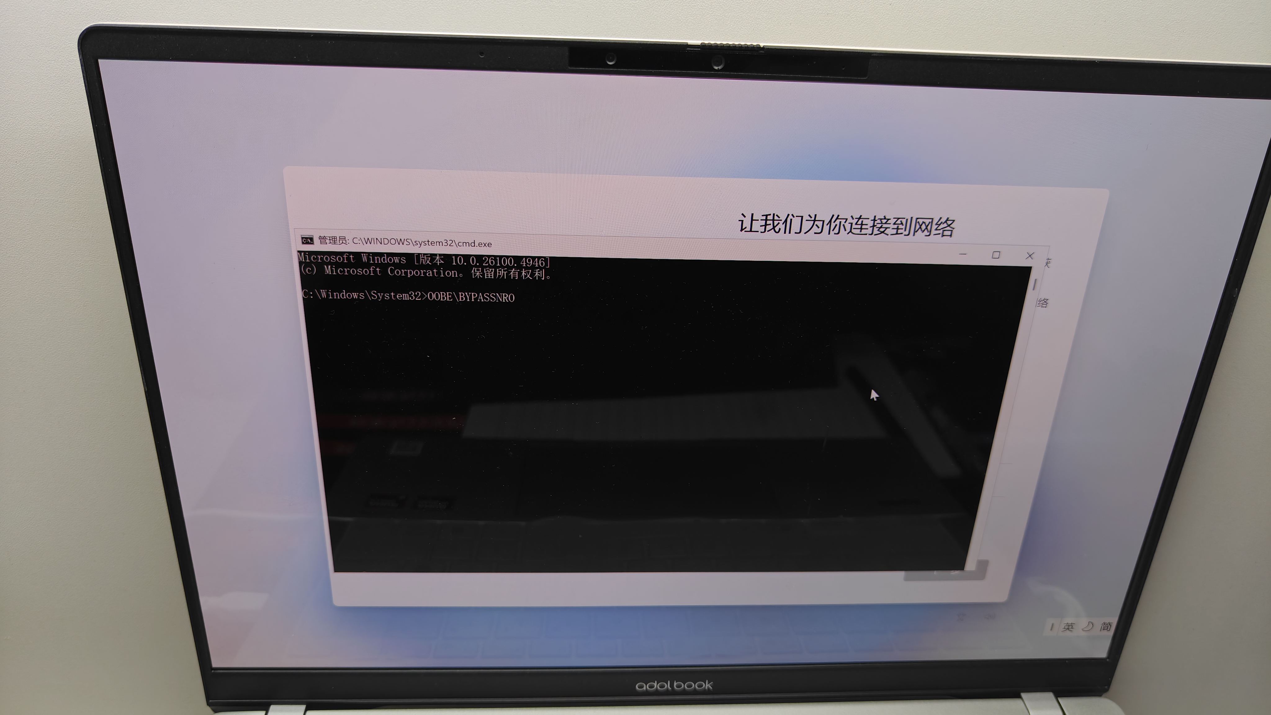 遇到以上情况可选择跳过联网激活过程。流程如下:按住Shift+F10(或者Fn+Shift+F10)调出命令提示符,输入"OOBE\BYPASSNRO"后,点击回车,电脑会自动重启,重启后可能需要重复部分初始化流程,进行到此界面时会出现“我没有Internet链接”选项,大家可与上图自行对比差异。