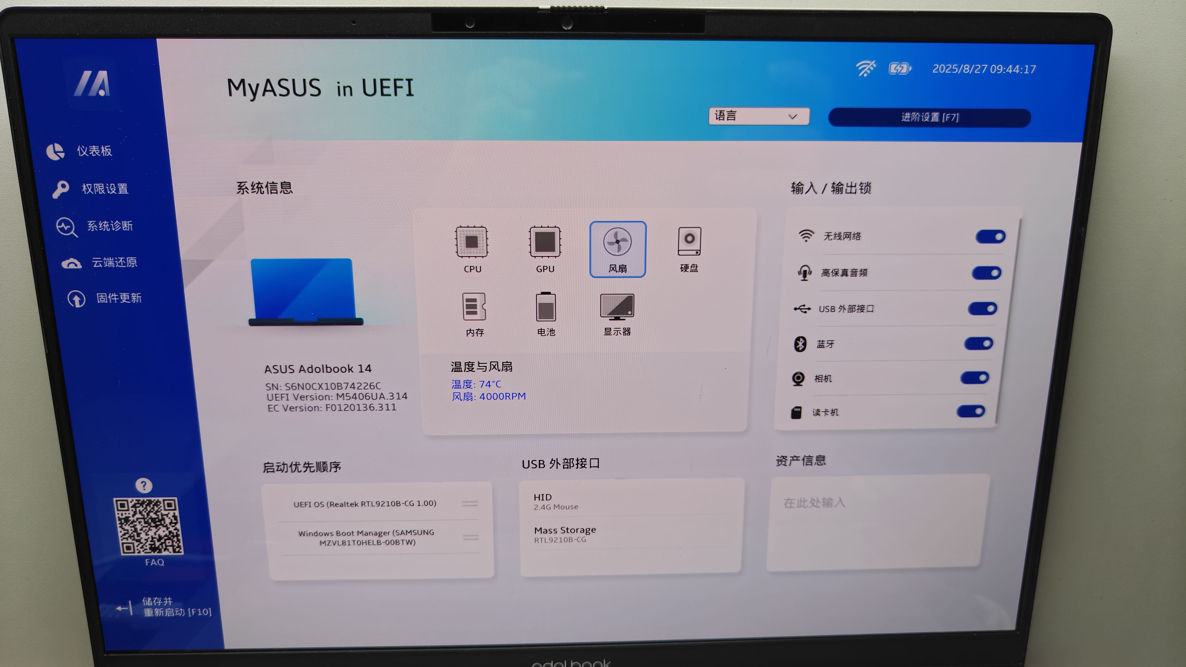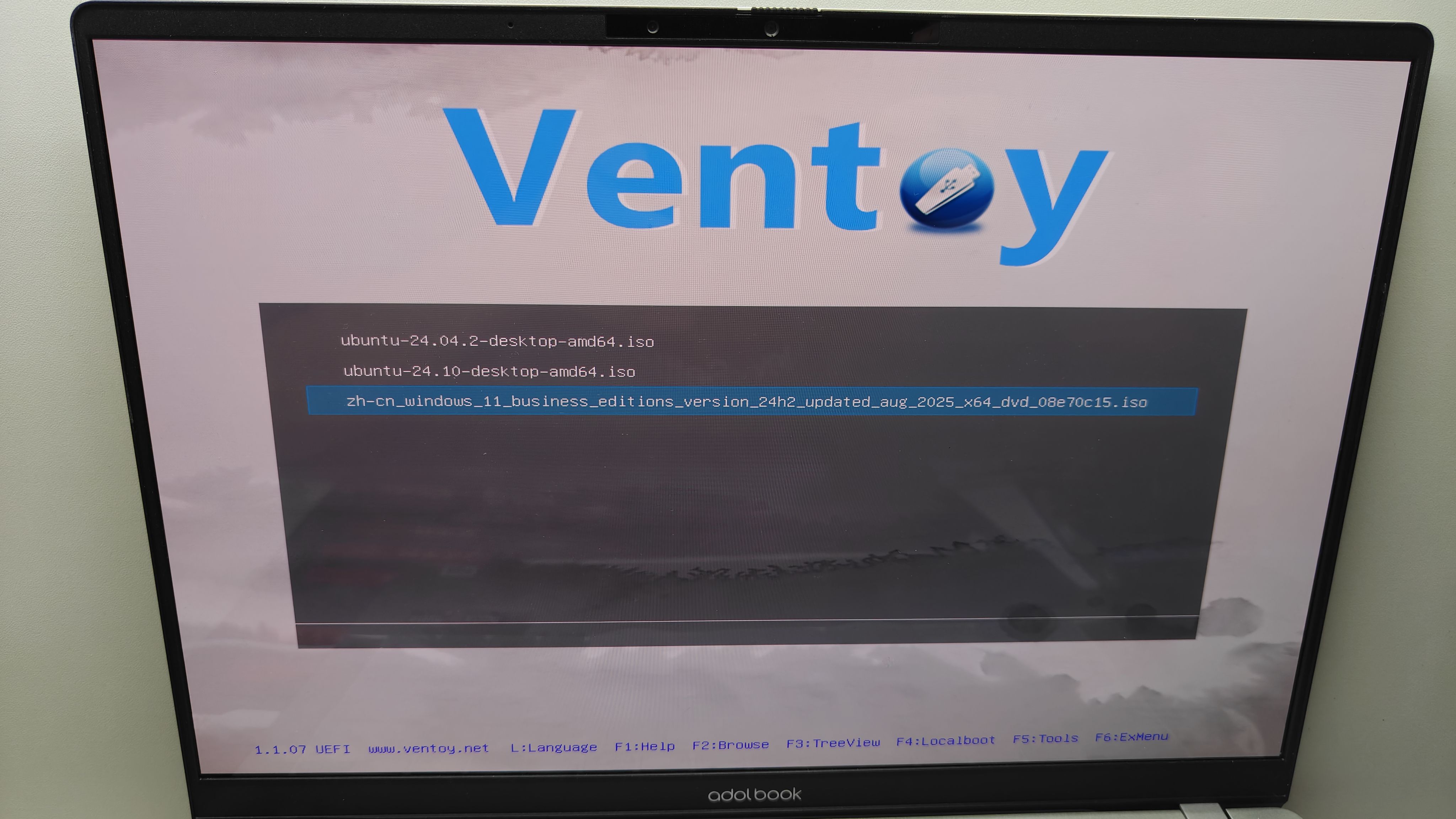 重启电脑进入Bios,关闭安全启动选项,将U盘的优先启动顺序调整至第一位,保存退出,等待电脑重启进入Ventoy引导界面。(不同品牌笔记本/主板进入Bios设置的方法请自行百度,本篇以华硕a豆14 Air 2024款为例)